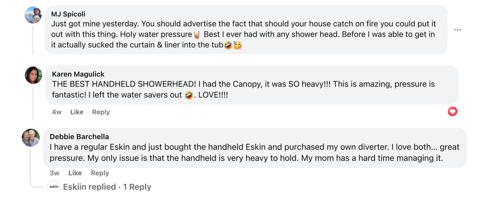 As a dermatologist, I've started recommending eskiin to all my patients with unexplained skin issues. The handheld version is especially great for people who need more control during washing. The results have been remarkable. The medical community needs to pay more attention to water quality.